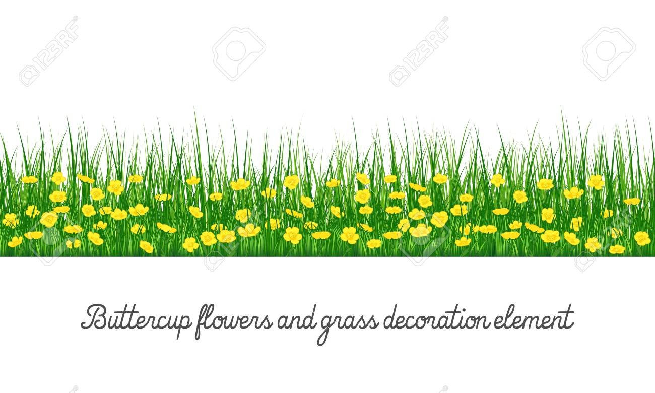 Buttercup Flowers And Grass Decoration Element Isolated On