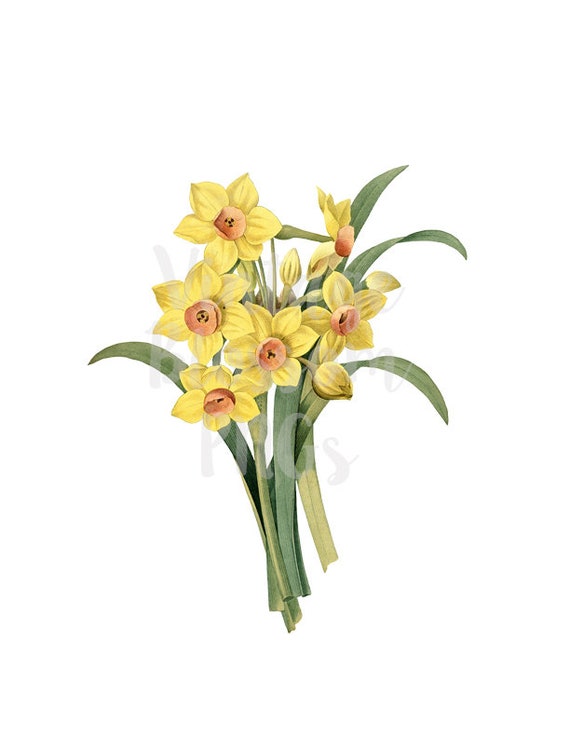 Narcissus Vintage Clip Art Vintage Flowers Vintage Graphic Etsy