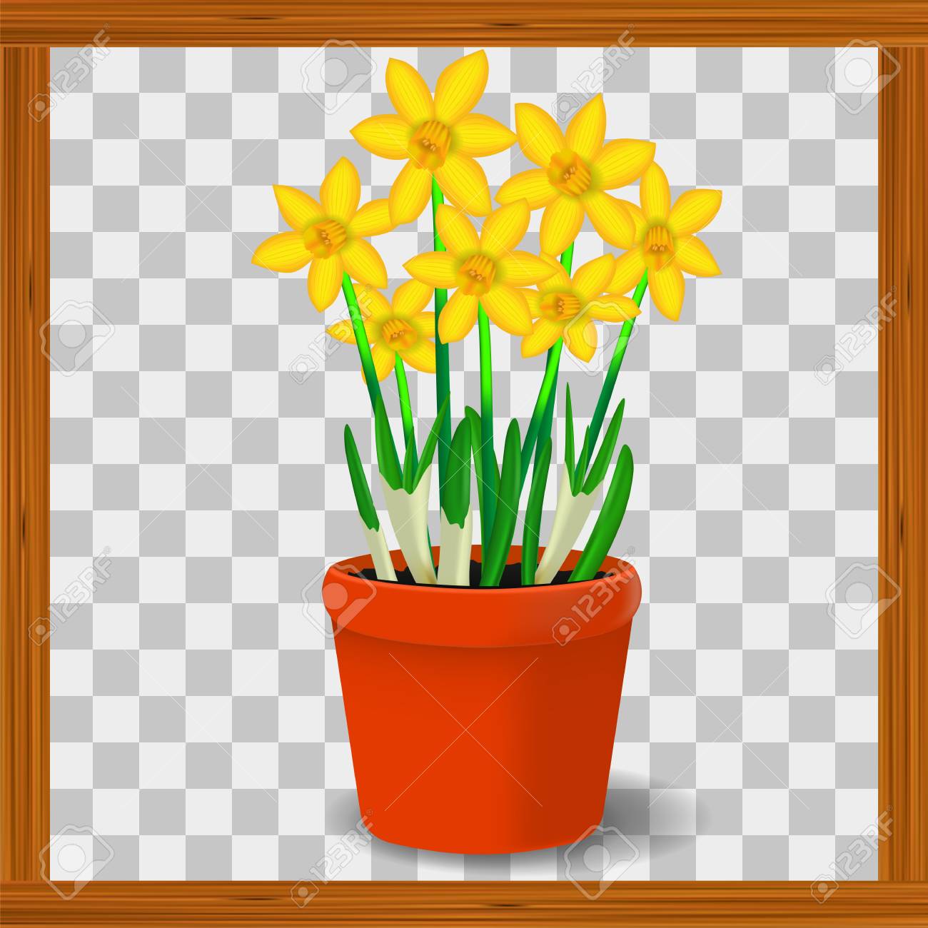 Vector Realistic Image Of Yellow Flowers Of Daffodils In A Pot
